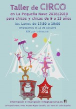 Taller trimestral de CIRCO para chicos y chicas de 9 a 13 años. Los Lunes de 17:30 a 19:00. Precio: 85 € por trimestre. Empezamos el 15 de Octubre. Información e inscripción: info@lapvcirco.es